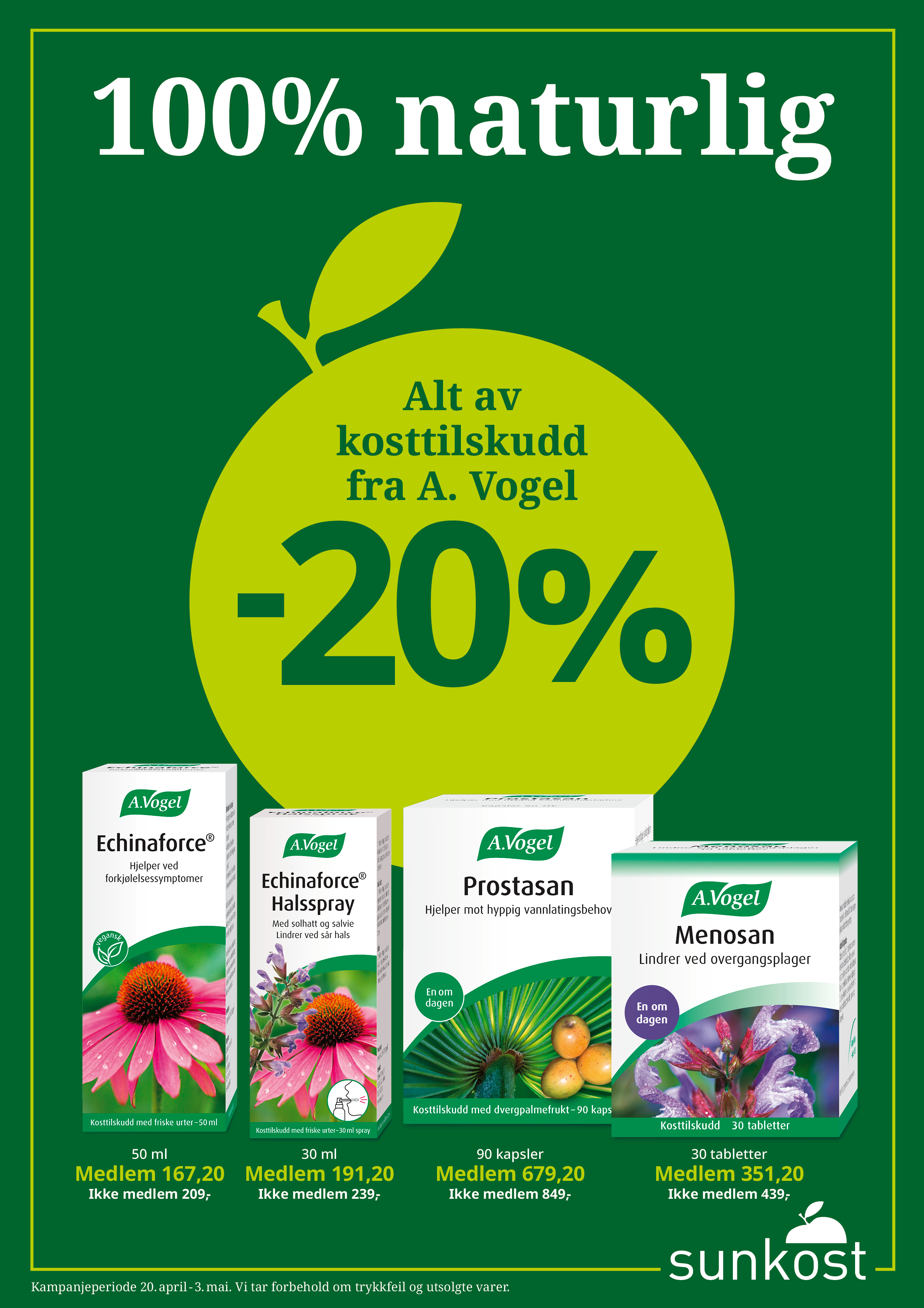 Sunkost har stort utvalg av helsekost, kosttilskudd, og hudpleie.